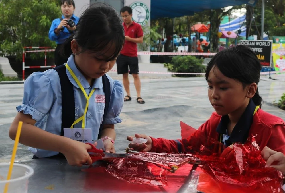 Từ 16 giờ đến 18 giờ, tổ chức sân chơi cho các em thiếu nhi với nhiều trò chơi như ném còn, chọi banh, ô ăn quan, nặn tò he…; khu vực sáng tạo cùng cha mẹ như làm đèn lồng, tô tượng, tranh cát…; gian hàng ẩm thực cũng vô cùng sôi nổi với nhiều món ăn miễn phí cho các em.