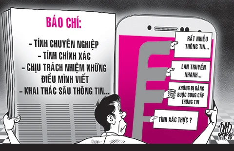 | Theo nghiên cứu do Viện Nghiên cứu báo chí Reuters (RISJ) thực hiện, có 44% người dùng Facebook coi MXH này là nguồn cung cấp tin tức chính của mình. Theo thống kê của “wearesocial.net” (một tổ chức có trụ sở chính ở Anh nghiên cứu độc lập về truyền thông xã hội toàn cầu) tháng 1-2015, người Việt Nam đang đứng thứ tư trên thế giới về thời gian sử dụng Internet với 5,2 giờ mỗi ngày. Hơn nữa, người Việt Nam sử dụng Internet cũng đứng thứ chín về số thời gian trung bình dành cho MXH là 3,1 giờ mỗi ngày; đứng thứ 22 trên thế giới tính theo dân số về số người sử dụng MXH là 31%, trong đó Facebook là MXH được sử dụng thông dụng nhất. Nhà báo HOÀNG MINH TRÍ: Uy tín của nhà báo trên MXH Tôi làm nghề báo nhưng có lẽ việc sử dụng MXH lại có phần thành thạo hơn chuyên môn chính. Cộng đồng mạng tin tôi hơn vì hai chữ “nhà báo”, họ biết tôi không bao giờ đặt cược uy tín cá nhân vào việc tung ra những thông tin thất thiệt. Theo một thống kê không chính thức thì hiện nay Việt Nam có xấp xỉ 30 triệu người sử dụng Facebook, MXH quy mô và lớn nhất toàn cầu tại thời điểm này. Không ít vấn đề nóng của xã hội lại xuất hiện đầu tiên trên mạng, điều đó không ngạc nhiên với lực lượng hùng hậu vài chục triệu “cộng tác viên”. Báo chí vào cuộc sau nhưng không có nghĩa họ bị lép vế bởi tính chuyên nghiệp đặc thù người làm báo, nhà báo có điều kiện, năng lực nguồn lực, kinh phí, tính chính danh của tổ chức, có đồng đội… để khai thác thông tin, điều mà MXH không có. Việc tổ chức thông tin trên MXH như một anh chạy đường dài và đứt hơi, không có liên tục, đậm đà thời vụ và cơ hội cho những kẻ muốn đánh bóng tên tuổi. Ở khía cạnh khác, người dùng mạng không bị ràng buộc nghĩa vụ cung cấp thông tin đến cùng cho bạn đọc. MXH là mớ rau nguyên liệu và thông tin chính thống trên báo chí luôn là món ăn ngon an toàn hơn cho người đọc. Nếu như MXH thay thế được báo chí, tôi tin đó sẽ là thảm họa hơn là một tin đáng mừng. Có xã hội nào sống chung được với hoang mang niềm tin? Nhà báo NGÔ NGUYỆT HỮU: Quyền lực của nút like Có rất nhiều câu chuyện ầm ĩ trên báo giới xuất phát từ Facebook, như chuyện các CSGT vi phạm ở ngã ba Thái Lan (Đồng Nai) vừa qua, chuyện Phó Chủ tịch UBND tỉnh Hậu Giang Trịnh Xuân Thanh đi xe Lexus 570 biển số công vụ, vụ phạt 5 triệu đồng vì “cái mặt kênh kiệu” ở An Giang, vụ đòi kỷ luật cô giáo vì đăng status phản ánh “cây cầu đã gãy” ở Long An… Tháng 1-2015, xuất hiện bản tin “Bắt kẻ tống tiền chủ nhãn hiệu Number One 500 triệu đồng”, bản tin chưa đầy 200 chữ tưởng chừng đã chìm nghỉm giữa hàng chục bản tin thời sự xã hội khác vì cơn sóng thông tin mới thì bất ngờ một hot Facebooker phân tích rõ hơn về bản tin này. Ngay lập tức phân tích ấy được like và share rất nhanh, trên Facebook tràn ngập câu chuyện “ruồi trong chai nước ngọt”. Nhiều cơ quan truyền thông nhanh chóng nhập cuộc với đủ thể loại đề tài xoay quanh chuyện này được chuyển tải lên mặt báo. Từ chuyện gài bẫy người tiêu dùng, đạo đức kinh doanh, gia cảnh người bị bắt, những vụ việc tương tự. Hãng giải khát này lâm vào cơn khủng hoảng truyền thông. Đây chỉ là câu chuyện điển hình trong hàng loạt câu chuyện khác về sức nóng của MXH. Trước đây, rất nhiều cá nhân nhầm tưởng nút like trên MXH chỉ là một trò vô bổ. Tuy nhiên, nút like chính là một thứ biểu tượng quyền lực thông tin mới. Quyền lực của nút like tập trung vào những cây bút - đa phần là nhà báo với lập luận, tư duy, văn phong, thông tin nổi trội hơn phần đông những người sử dụng Facebook. Nhà báo BẠCH HOÀN: Viết Facebook như viết báo Tôi viết trên Facebook với một trách nhiệm và nguyên tắc nghề nghiệp của một nhà báo. Đã là nhà báo viết Facebook thì phải như viết trên những tờ báo chính thống. Trong sự việc cá chết ở bốn tỉnh miền Trung vừa qua, tôi viết rất nhiều bài trên Facebook. Các vấn đề liên quan đến sự bất thường trong giám sát hoạt động xả thải của nhà máy gang thép Formosa Hà Tĩnh, tôi phân tích rất kỹ. Tất cả dữ liệu đều được thu thập như tác nghiệp báo chí, có chụp ảnh, có quay phim, có phỏng vấn Formosa, có phỏng vấn ngành TN&MT Hà Tĩnh, có câu chuyện từ ngư dân, có văn bản từ cơ quan quản lý nhà nước... Người đọc Facebook đa phần rất thông minh và họ sàng lọc thông tin rất tốt. Thế nên một thông tin được xác thực, được viết một cách nghiêm túc sẽ tạo được sự lan tỏa có khi theo cấp số nhân trên MXH. Như khi tôi viết về sự giám sát lỏng lẻo đối với hoạt động của Formosa Hà Tĩnh, ngay lập tức có hàng ngàn lượt chia sẻ. Nhà báo hiện nay có hai kênh để truyền tải thông điệp, đó là tờ báo mình đang làm việc và trang Facebook của cá nhân nhà báo. Việc thể hiện quan điểm trên Facebook đương nhiên phải nhất 