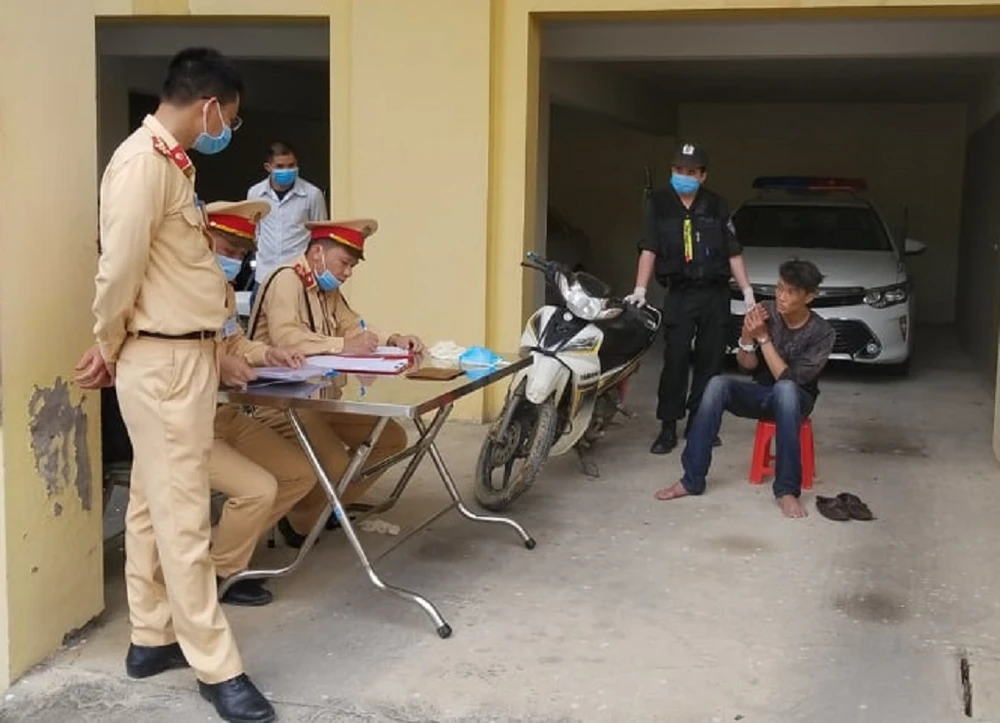 CSGT tóm gọn nghi phạm trộm xe máy. Ảnh: MH