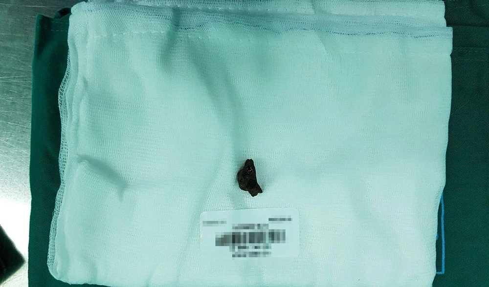 Mảnh đạn lạc được lấy ra khỏi người ông K. Ảnh: BVCC