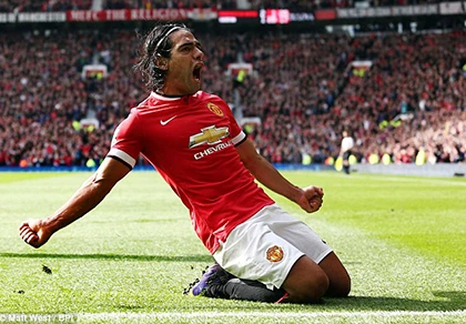 Falcao ăn mừng bàn thắng đầu tiên trong màu áo Man United.