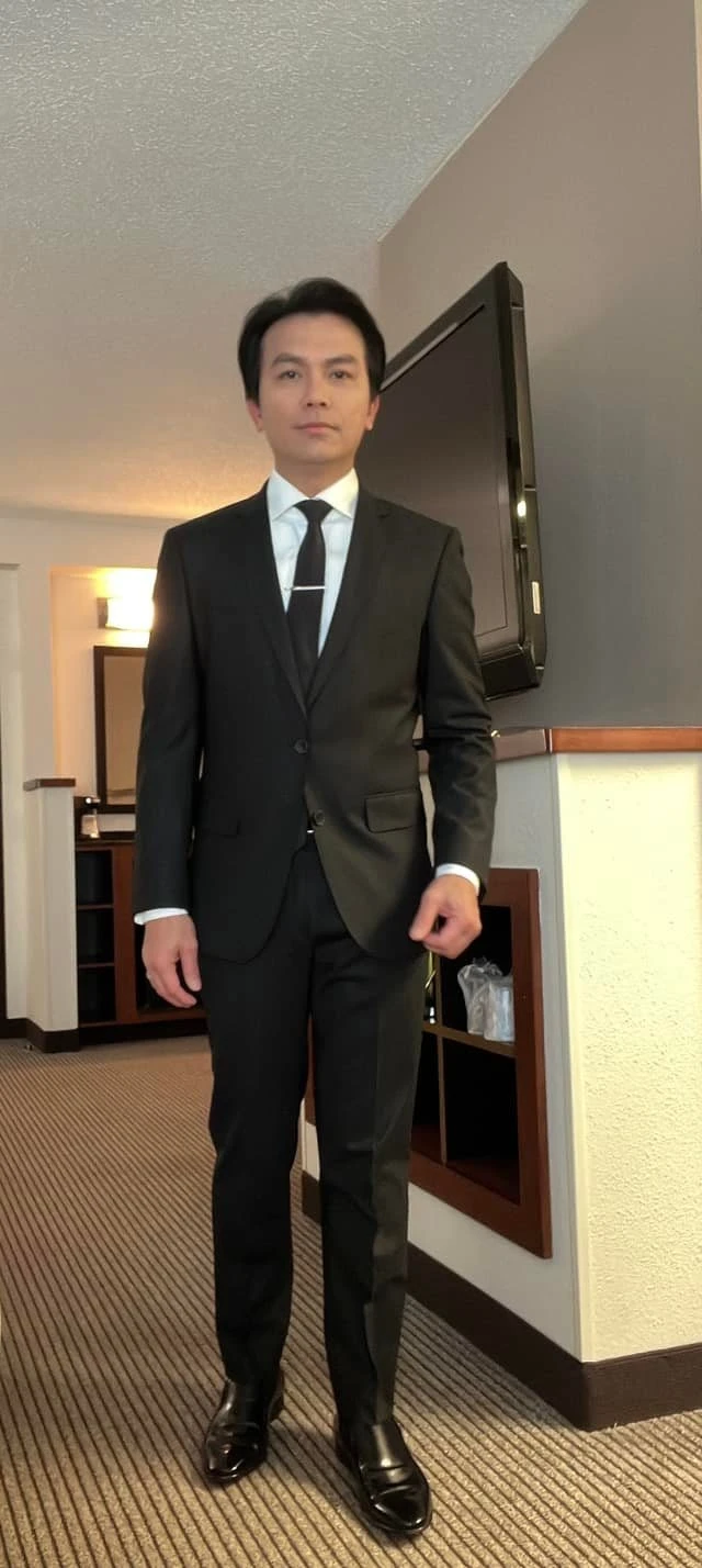 Suốt thời gian qua Mạnh Quỳnh đều mang trang phục veston đen, áo sơ mi trắng thắt cravat đen để tưởng nhớ Phi Nhung. Ảnh: FBNV.
