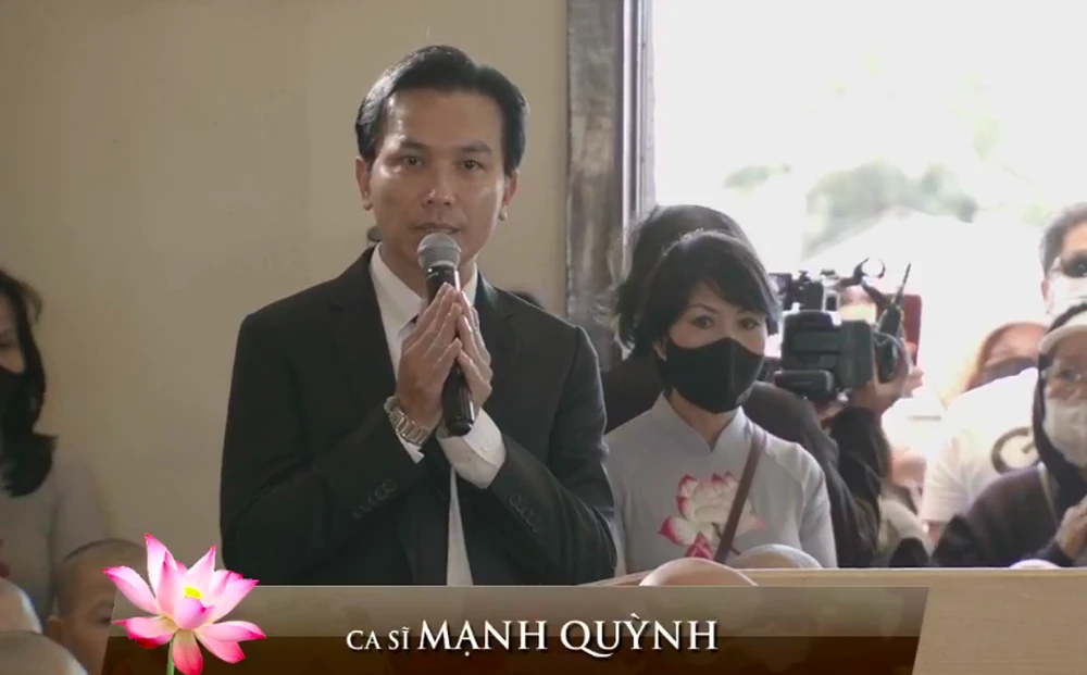 Xuất hiện trong buổi lễ, Mạnh Quỳnh đã đứng rất lâu trước bàn thờ của cố ca sĩ Phi Nhung để nói những điều sau cùng.