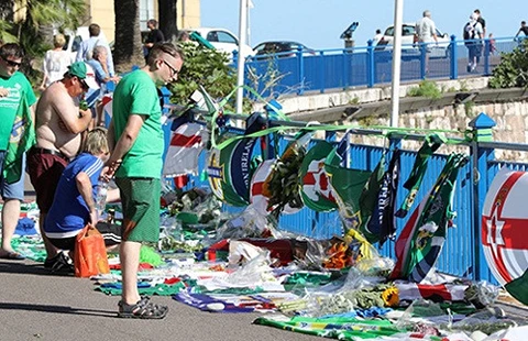 Các CĐV Bắc Ireland tưởng niệm người CĐV xấu số và đội tuyển của họ cũng tiếc thương người anh em biến nỗi buồn thành chiến thắng đầu tay của đội nhà. Ảnh: GETTY IMAGES