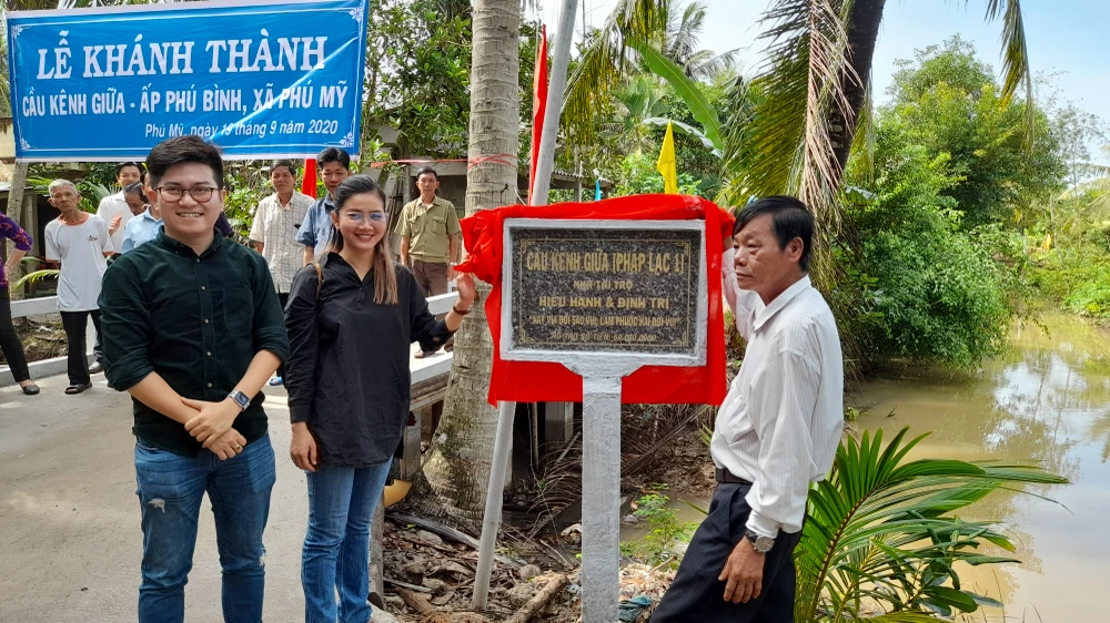 Nhà tài trợ cùng đại diện địa phương tại buổi khánh thành cầu Kênh Giữa. Ảnh: Đ.Hà
