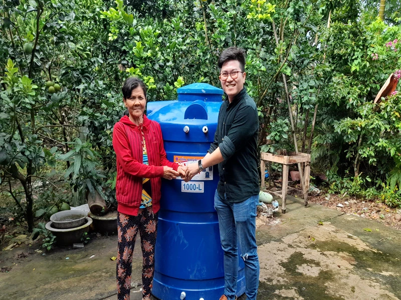 Nhân dịp này, nhà tài trợ cũng đã trao tặng bồn chứa nước ngọt trị giá gần 2 triệu đồng cho hộ ông Nguyễn Văn Đấu là hộ nghèo ở xã Phú Mỹ.