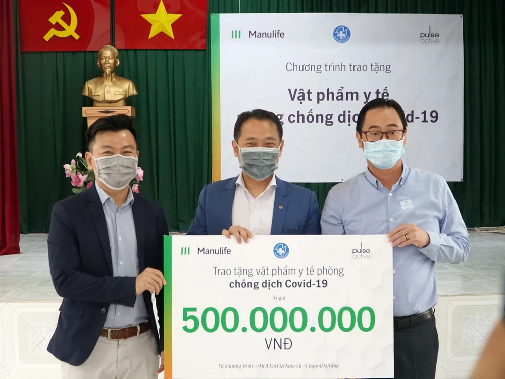 Trước đó, vào tháng 4, Manulife Việt Nam cũng đã trao tặng nhiều vật phẩm y tế trị giá hơn 3 tỷ đồng cho các trung tâm cách ly tại Hà Nội và TP.HCM. Đây là gói quà tặng vật phẩm y tế thiết yếu gồm 20.000 khẩu trang, 12.000 bộ đồ bảo hộ y tế, 10.000 lít gel rửa tay, 500 quạt điện giữ mát và 15 tủ lạnh dự trữ thuốc y tế.