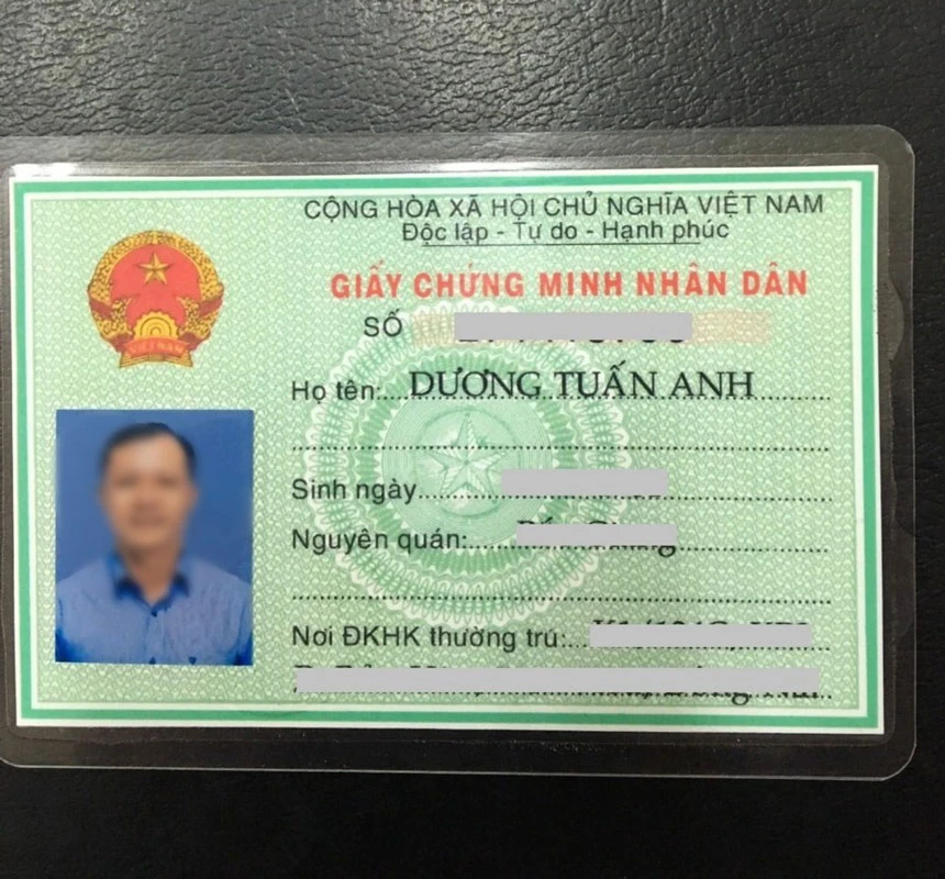 Giấy CMND mang tên Dương Tuấn Anh bị bỏ lại văn phòng công chứng nghi là giả mạo. (Ảnh do công chứng viên cung cấp)