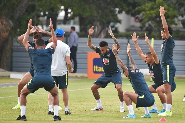 Neymar cùng dàn sao Brazil tập luyện tại Singapore.