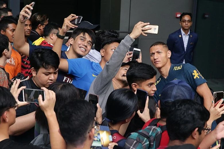 Fan Singapore chụp ảnh cùng sao Brazil.