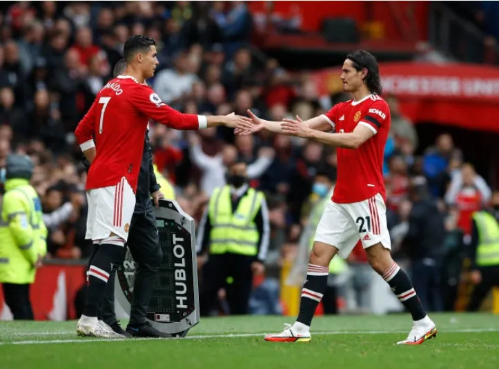 Ronaldo vào sân thay Cavani. ẢNH: REUTERS