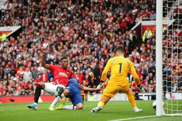 Martial ghi bàn trong trận MU thắng Chelsea.