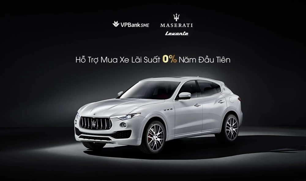 Từ nay đến ngày 31-12, khách hàng vay mua dòng xe SUV Levante tại VPBank từ 5 năm trở lên, sẽ được tài trợ lãi suất 0% trong năm đầu tiên.