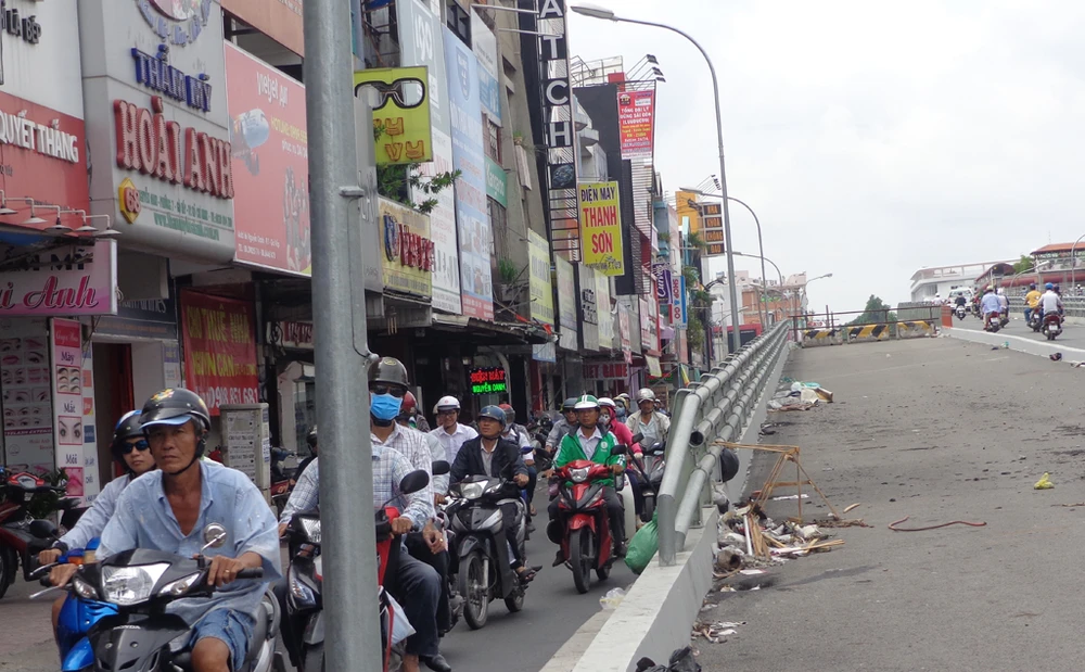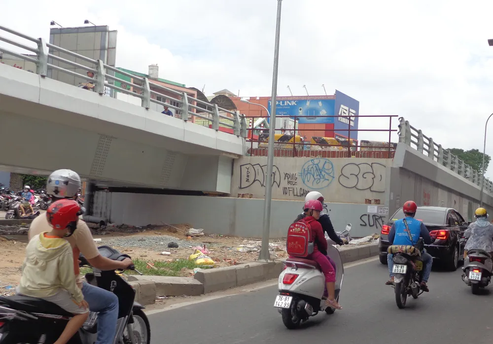 Đường dẫn xuống đường Nguyễn Oanh và đường bên hông đường dẫn cũng đã xong và chỉ còn chờ nhánh phụ Phạm Ngũ Lão nối qua.