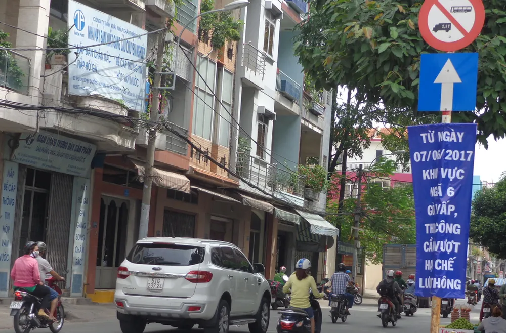 Những ngày qua, tại ngã ba Nguyễn Thái Sơn - Phạm Ngũ Lão đã thấy các băng rôn thông báo cầu vượt ngã sáu Gò Vấp sẽ được thi công trở lại.