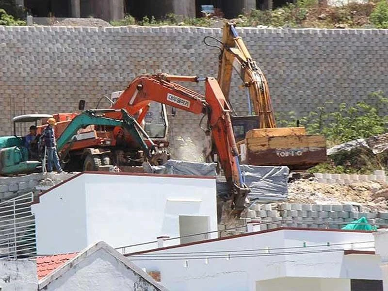 Đại diện Công ty Đồi Xanh cho hay hiện đơn vị đang tiến hành tháo dỡ các biệt thự nằm phía trên tường chắn, đồng thời làm hành lang tại các khu vực giáp ranh nhà dân, tiếp theo là phá bỏ bức tường chắn. Dự kiến có đến hơn 700.000 m3 đất đá, gạch, bê tông của dãy tường chắn sẽ bị phá dỡ để vận chuyển đi nơi khác.