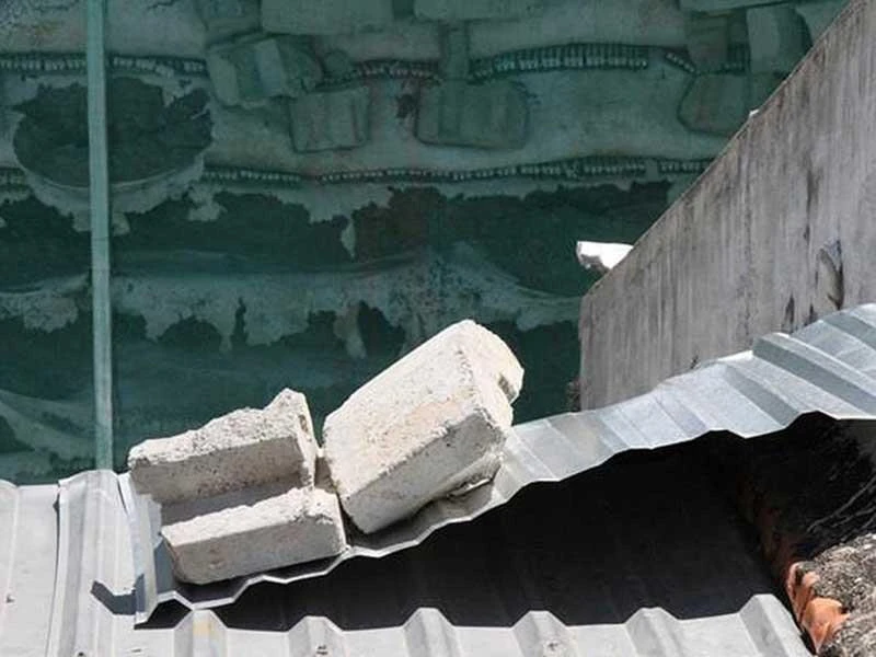 Đá, bê tông tường chắn đổ xuống nhà dân. Ảnh: T.LỘC
