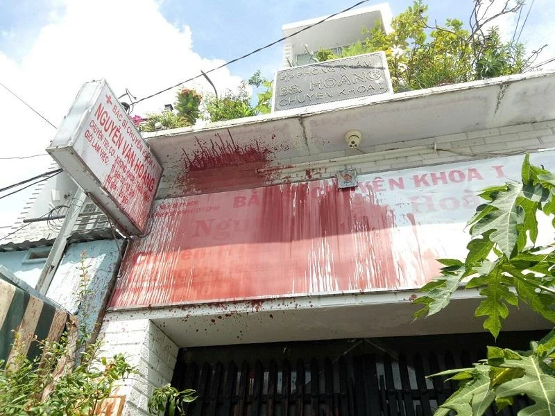 Phản ánh đến báo Pháp Luật TP.HCM, bà Nguyễn Thị Tốt (sinh năm 1967) chủ nhân căn nhà trên, cho biết: Khoảng rạng sáng ngày 19-5, bà nghe tiếng chó sủa lớn trước cửa nhà và sau đó là có tiếng nước hất mạnh vào nhà. Lúc đó, bà không dám mở cửa ra xem. Đến khoảng 5 giờ sáng, bà Tốt phát hiện cửa nhà đã bị khóa trái từ bên ngoài và sơn đỏ tạt vung vãi khắp từ mái hiên đến cửa rào, nền nhà.