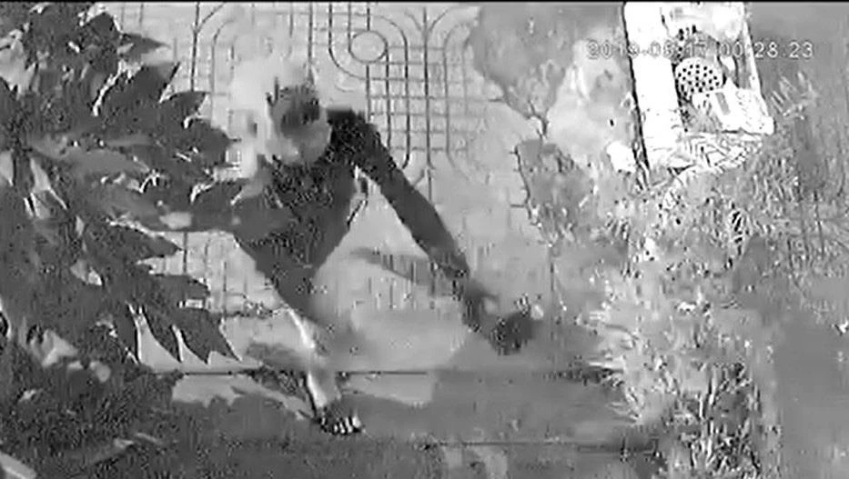 Hình ảnh thủ phạm tạt sơn, được camera nhà bà Tốt ghi lại. Ảnh cắt từ clip được bà Tốt cung cấp.