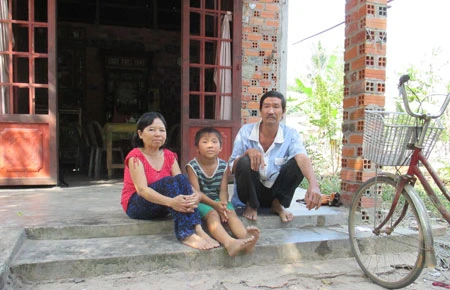 Em Chánh và vợ chồng người bác đang cưu mang em. Ảnh: HM