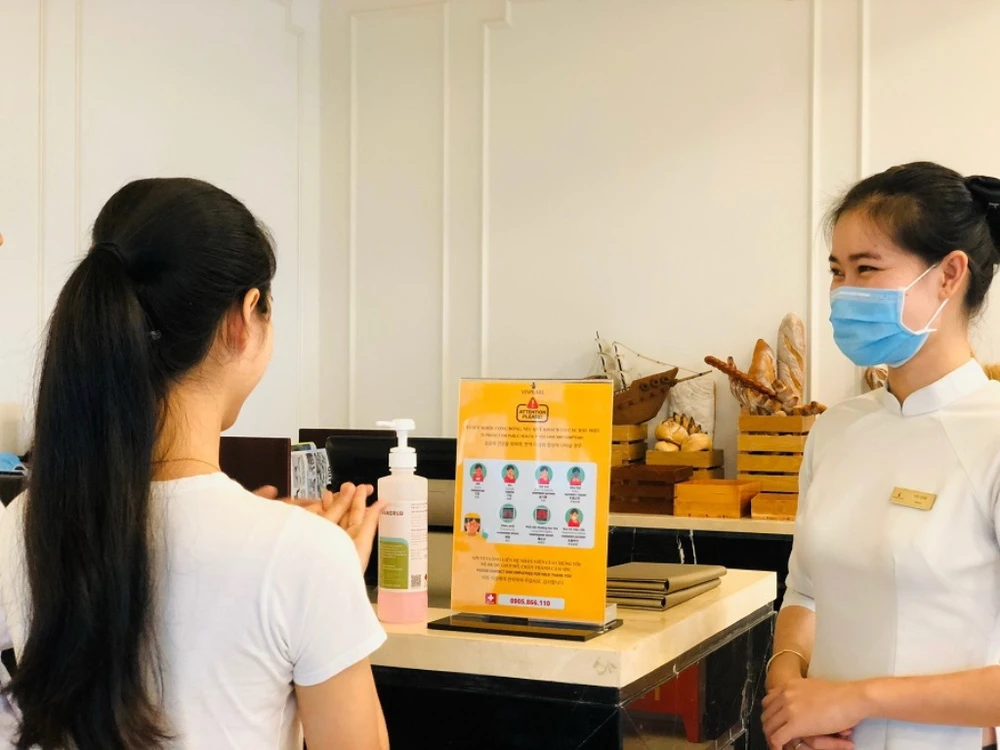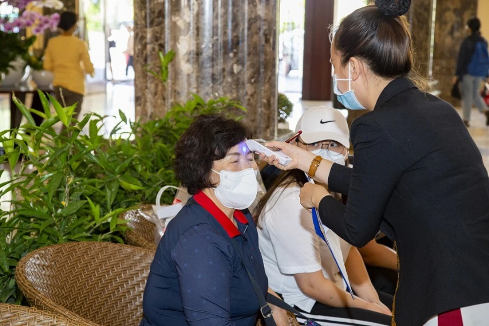 Để giúp du khách an tâm lưu trú tại hệ thống, nhân viên y tế luôn túc trực tại sảnh đón tiếp để kiểm tra thân nhiệt và các dấu hiệu lâm sàng. Nhân viên lễ tân sẽ hỗ trợ khai báo y tế, ghi nhận hành trình, lý lịch trước khi nhận phòng.