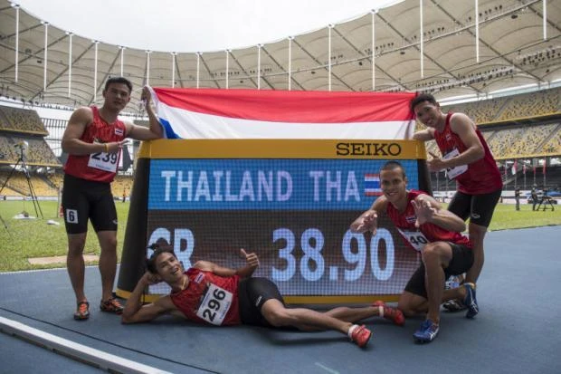 Mất HCV 4 x 100 m về tay đội nữ Việt Nam nhưng đội nam của họ thì không chỉ bảo vệ được “ngôi vua” ở nội dung này mà còn tạo kỷ lục. Ở nội dung 4 x 100 m nam, bốn tay chạy nước rút Namsuwan, Chuangcai, Meenapra và Taternram có thành tích 38”90 - hạ bệ kỳ này được thiết lập lại SEA Games 2007 cũng do các tay chạy nước rút đồng hương của họ lập với thành tích 38”95.