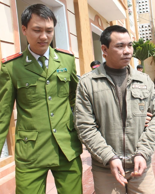 Cảnh sát dẫn giải bị cáo Lê Văn Ngọ về Trại tạm giam Công an tỉnh Nghệ An. Ảnh: ĐL