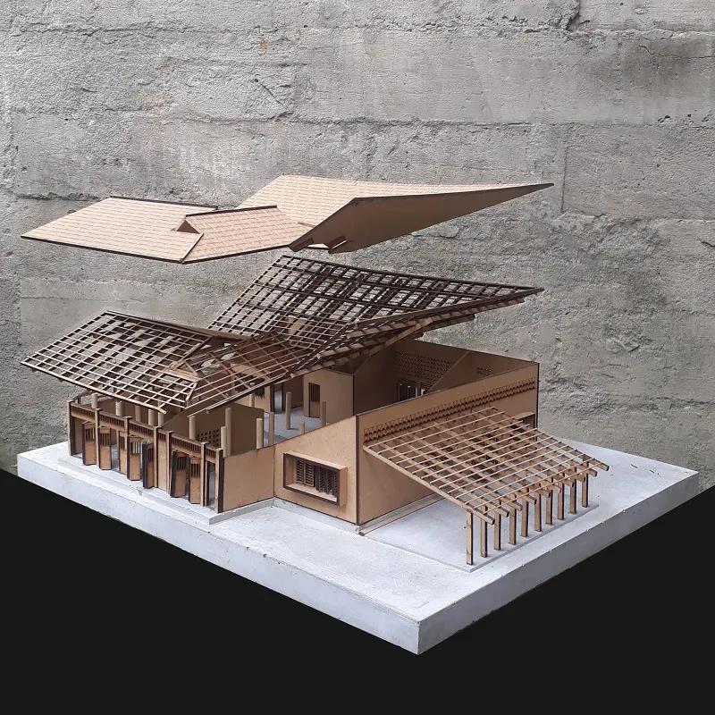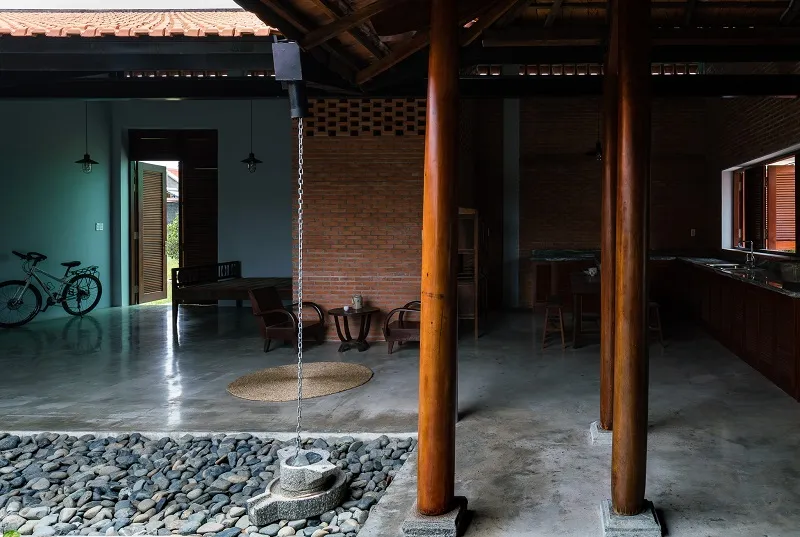 Nhóm KTS Giang Đoàn, Hoàng Duy, Minh Quân, Hải Vũ, Nguyễn Hương, Khánh Nguyễn (G+Architects) đã phát triển không gian cho ngôi nhà theo bố cục nhà truyền thống với nhà thờ ba gian được phục dựng, khu nhà ở nối liền bằng hành lang mở và có khoảng đệm là hồ nước.