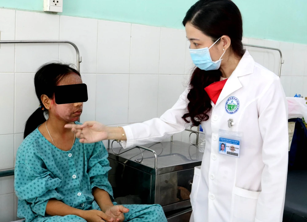 Tại đây, chị H. được các BS chỉ định điều trị bằng kháng sinh, kháng viêm và thuốc bôi. Sau gần một tuần điều trị, tình trạng chị đã ổn định hoàn toàn, mặt hết sưng, các tổn thương đã khỏi. Tuy nhiên, do da mặt bị tổn thương nặng nên nhiều chỗ da bị giảm sắc tố, cần thời gian hồi phục.