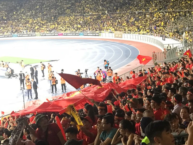 Khoảng 3.000 CĐV Việt Nam ngồi lọt thỏm giữa “chảo lửa” Bukit Jalil có sức chứa gần 20.000 người, lớn thứ hai châu Á và nằm trong tốp 10 thế giới. Chẳng ai ngao ngán cái gọi là thảm họa như cách đây bốn năm hai nhóm CĐV chạm trán đổ máu ở sân Shah Alam trong trận bán kết AFF Cup lượt đi.
