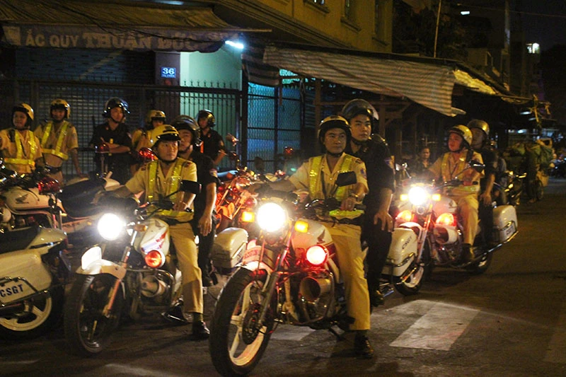 Đội CSGT Chợ Lớn phối hợp với CSCĐ tiến hành tuần tra, xử lý đua xe. Ảnh: LÊ THOA