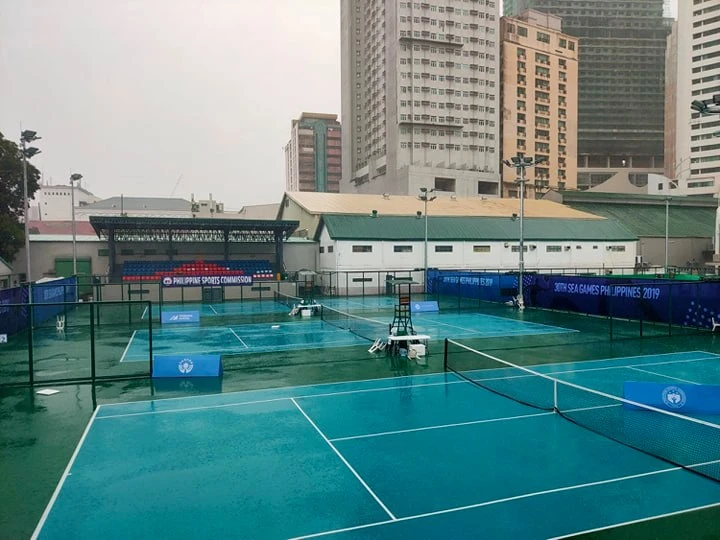 Mặc dù cụm thi đấu thể thao Rizal Memorial sở hữu sân đấu có mái che nhưng do mưa lớn, gió mạnh, nước tràn vào sân đấu chính khiến các VĐV quần vợt không thể thi đấu. Dự kiến buổi đấu sáng sẽ dời xuống chiều nếu tình hình thời tiết thuận lợi hơn.