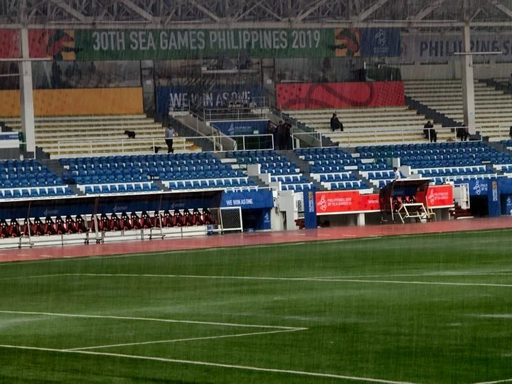 Tâm điểm của ngày thi đấu hôm nay tại SEA Games 30 là cuộc đối đầu giữa U-22 Việt Nam và U-22 Singapore ở môn bóng đá nam trên sân Rizal Memorial, Manila. Tuy nhiên, hiện tại ở Manila trời mưa rất to và gió lớn khiến mặt sân thi đấu sũng nước.