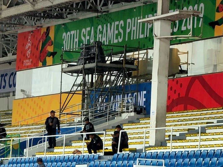 Các nhân viên trên khán đài sân Rizal Memorial.