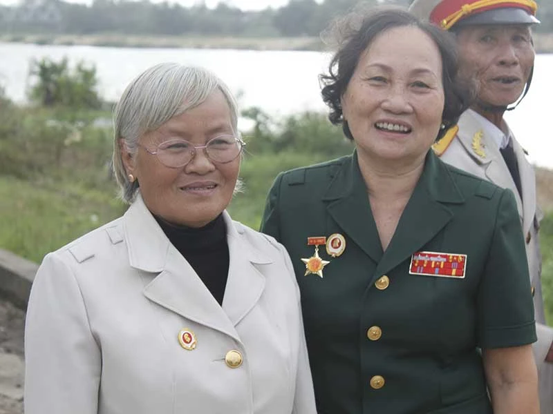 Bà Võ Thị Thu Sang (bìa phải), người chuyển bức mật thư đặc biệt của Tỉnh đội Quảng Ngãi xuân Mậu Thân 1968. Ảnh: VQ
