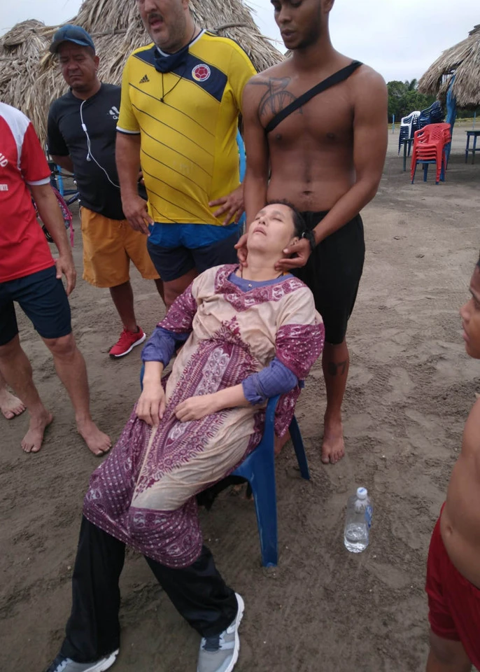 Trong đoạn clip được người dân địa phương chia sẻ trên các mạng xã hội, hai ngư dân đã cố gắng gọi người phụ nữ bằng cả tiếng Anh và tiếng Tây Ban Nha (ngôn ngữ chính thức của Colombia) nhưng gần như bà Gaitan không có phản ứng nào khác.