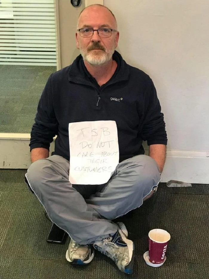 Ông Sweeney - một nạn nhân biểu tình ngồi 3 ngày ở trụ sở TSB - Ảnh: Charlie Sweeney