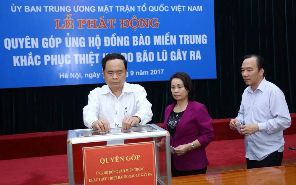 Chiều 19-9, ông Trần Thanh Mẫn, Chủ tịch UB Trung ương MTTQ Việt Nam thay mặt Đoàn Chủ tịch cơ quan này ra lời kêu gọi đồng bào cả nước quyên góp ủng hộ đồng bào miền Trung khắc phục thiệt hại do cơn bão số 10 gây ra.