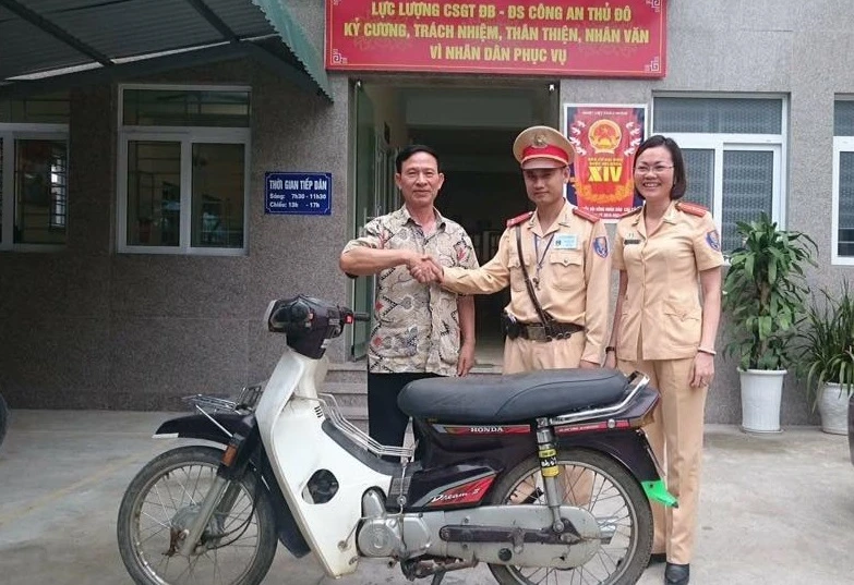 | Cùng ngày, Đội CSGT số 1 (Công an TP Hà Nội) cũng cho biết đơn vị vừa trao trả một chiếc xe máy mất cắp cho anh Nguyễn Thái Sơn (42 tuổi, trú tại Hà Nội). Cụ thể, qua công tác rà soát hồ sơ tổ công tác Đội CSGT số 1 phát hiện chiếc xe máy mang BKS 29L1-3661 có dấu hiệu nghi vấn. Vào cuộc xác minh, các cán bộ xác định chủ của chiếc xe là anh Nguyễn Thái Sơn, chiếc xe đã bị mất cắp từ năm 2014. Sau khi hoàn tất các thủ tục cần thiết, anh Sơn đã được mời đến trụ sở của đội để nhận lại tài sản bị mất cắp. |
