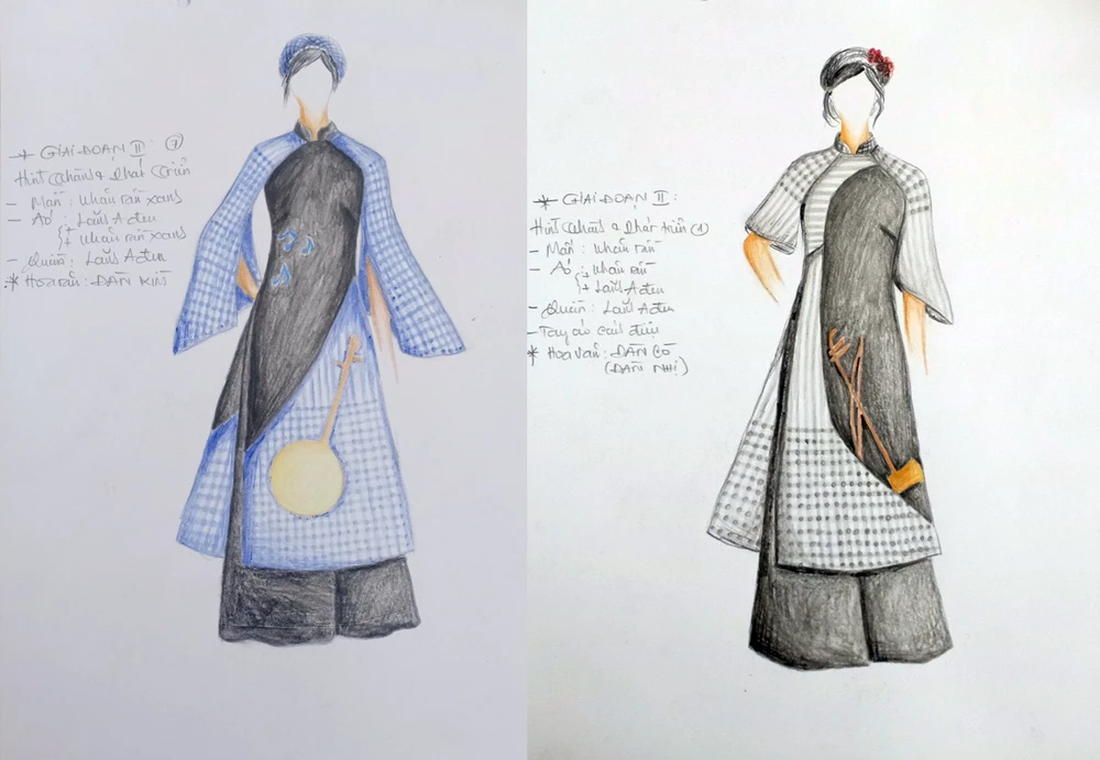 Phác thảo BST áo dài tôn vinh đờn ca tài tử của NTK Huệ Thi. Ảnh: CHÂU ANH