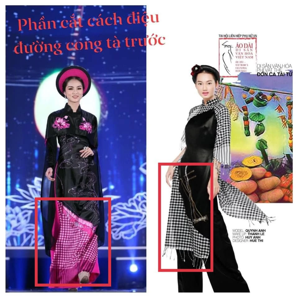 Thế nhưng, rất nhiều khán giả theo dõi đêm chung kết tại khu vực phía nam cho rằng có nhiều áo dài trong bộ sưu tập này rất giống với bộ sưu tập (BST) áo dài tôn vinh đờn ca tài tử của nhà thiết kế (NTK) Huệ Thi ở TP Cần Thơ.