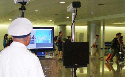 Du khách đến Việt Nam qua cửa khẩu Tân Sơn Nhất (TP.HCM) đều được đo thân nhiệt từ xa. Ảnh: TRẦN NGỌC
