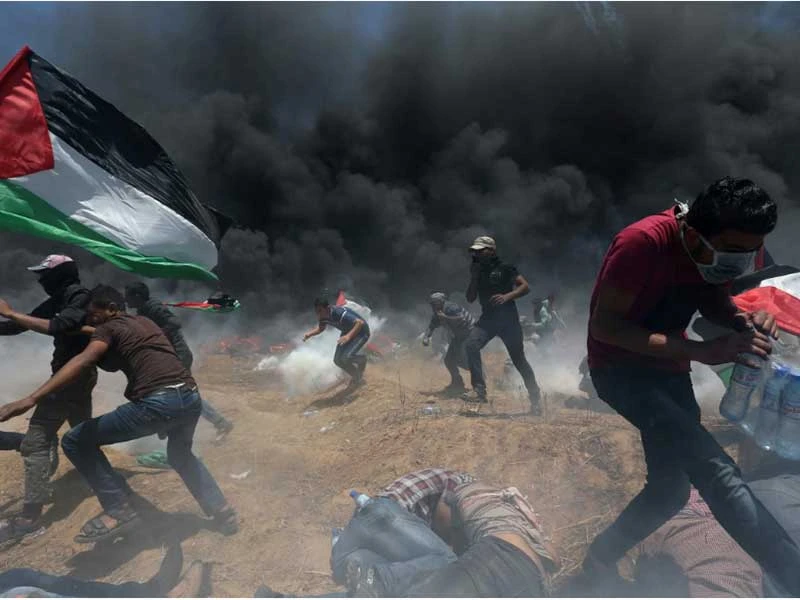 58 người Palestine đã chết, hơn 2.700 người bị thương vì đạn và hơi cay của Israel.