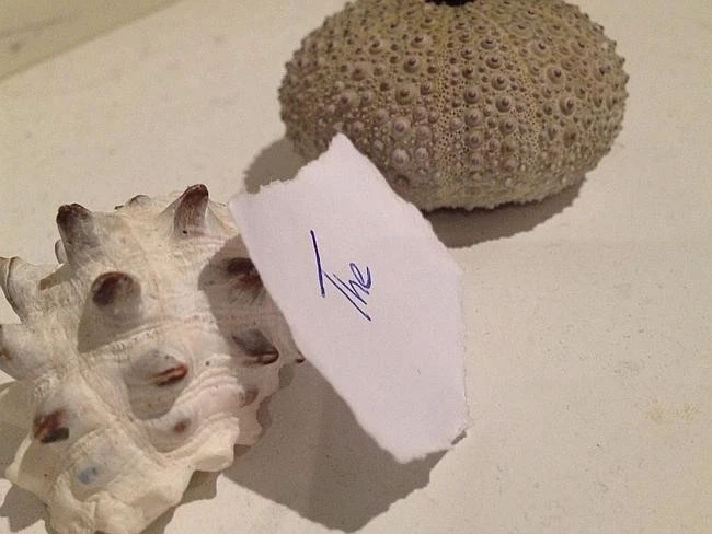 Vẻ đẹp của mẩu giấy The bên chiếc vỏ ốc biển.
