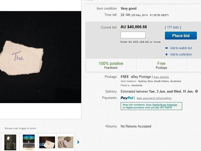 Phóng to Mẩu giấy ghi một từ duy nhất The đang gây sốt eBay.
