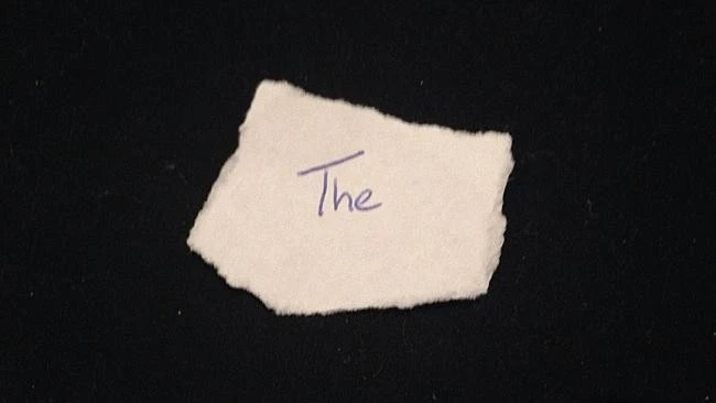 Được viết bằng tay với một chiếc bút bi màu xanh, trên một mẩu giấy được xé ra từ tờ Reflex khổ A4, "The" là một chữ cái đa năng, có thể được sử dụng trong hàng ngàn câu".