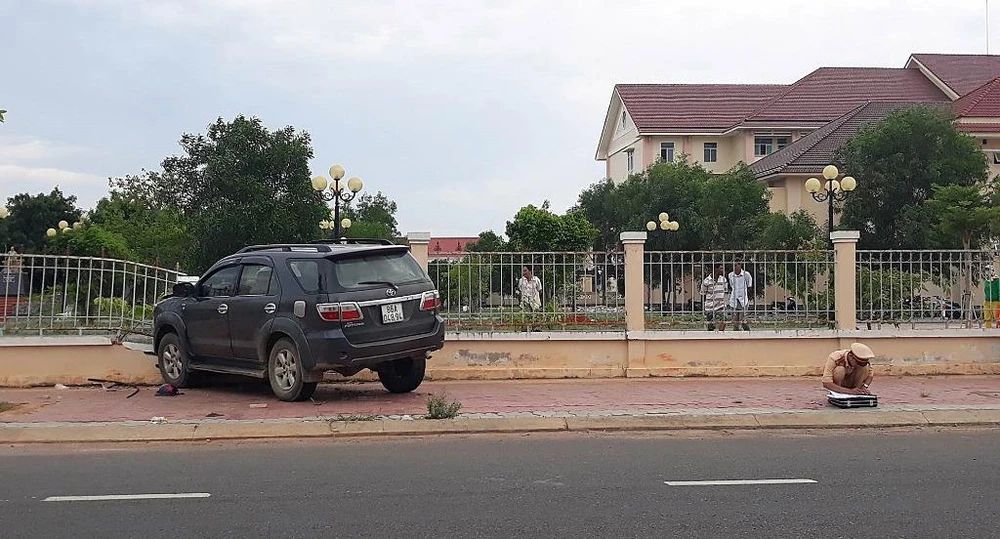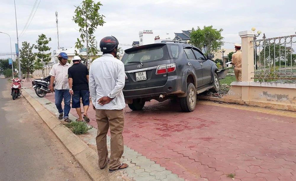 Khoảng 9 giờ 30 ngày 13-6, trên đường Võ Văn Kiệt, TP Phan Thiết (Bình Thuận), đoạn trước BV Y học cổ truyền và Phục hồi chức năng Bình Thuận, xảy ra vụ dùng ô tô truy đuổi, tông một người bị thương nặng và làm sập luôn một đoạn tường rào của bệnh viện.