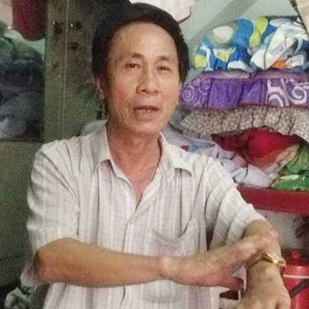 Ông Đặng Văn Hùng với vết thương bị người lạ chém khi đang trực bảo vệ. Ảnh: TD