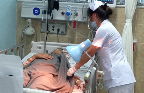 Anh Nguyễn Văn Sĩ đang điều trị tại BV Đa khoa Đồng Nai vì bị đâm thủng phổi. Ảnh: TD