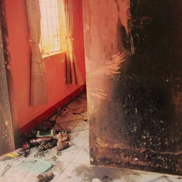 Căn nhà sau khi bị phóng hỏa. Ảnh: TD